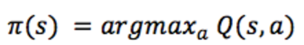 우선 위와 같이 정의한 Q 함수가 있다고 가정하자. 그리고 에이전트가 어떤 상태 s에 있고, 이 상태에서 취할 수 있는 액션 a와 b가 있다고 해보자. 이 중 어느 액션을 선택할지는 게임이 끝났을 때 어느 경우에 최종 점수가 높은지에 따라 달려 있다. 다시 말해 가장 높은 Q함수값을 가지는 액션들을 선택하면 된다. 그리고 각 상태 s에 대해 Q함수값이 가장 높은 액션들을 선택하는 규칙을 정책(policy)라고 부른다.